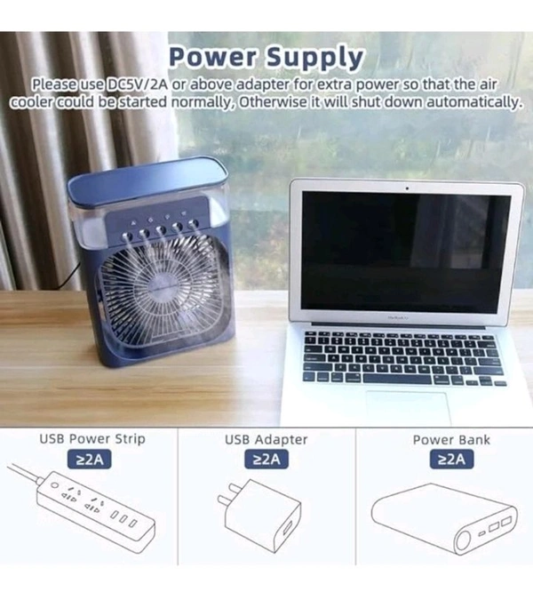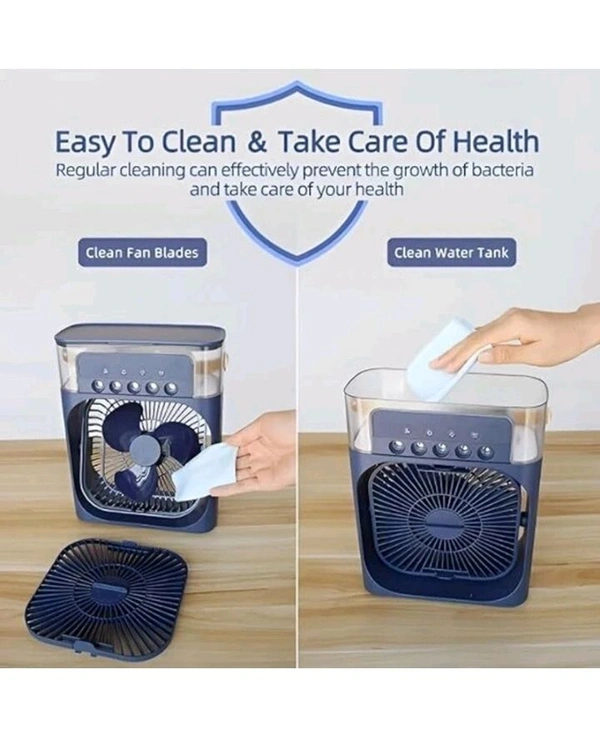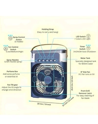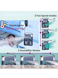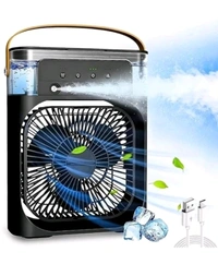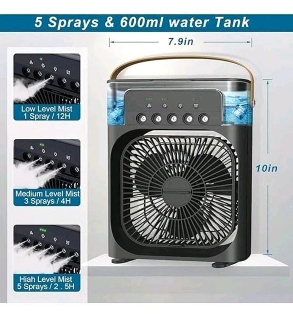 Portable 3-in-1 Air Cooler Fan with 600ml Water Tank, 5 Spray Mist Humidifier & 7 Color LED Light